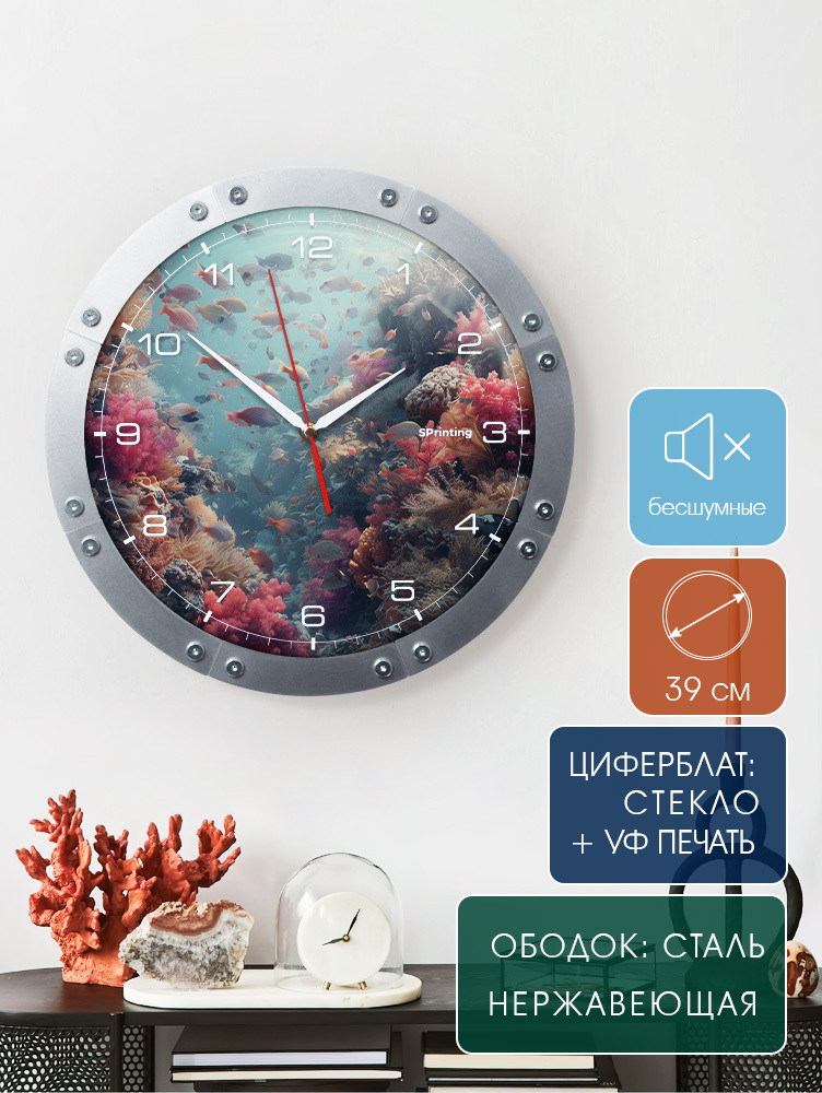Эти современные и стильные часы снабжены циферблатом из стекла, надежно защищенным ободком из нержавеющей стали. Они не только украшают пространство, но и привносят атмосферу спокойствия и уюта благодаря своему роскошному виду. Комбинация элементов моря в оформлении делает их настоящим произведением искусства, способным удивлять снова и снова.