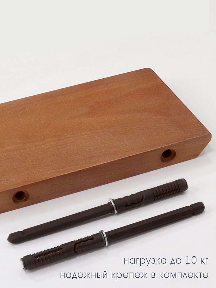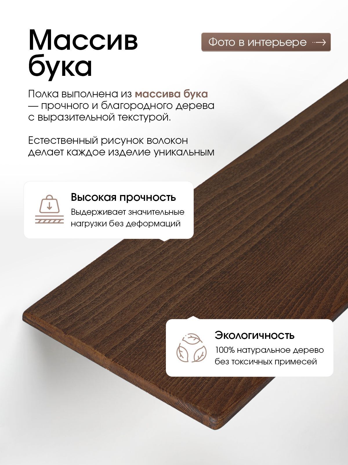 Настенная полка из массива дерева станет идеальным дополнением для вашего интерьера. Эта деревянная полочка подходит для установки в прихожую, кухню, ванную, спальню или комнату, добавляя стиль и функциональность в любое пространство. Изготовленная из прочного бука, она обеспечивает надежную поддержку и долговечность.